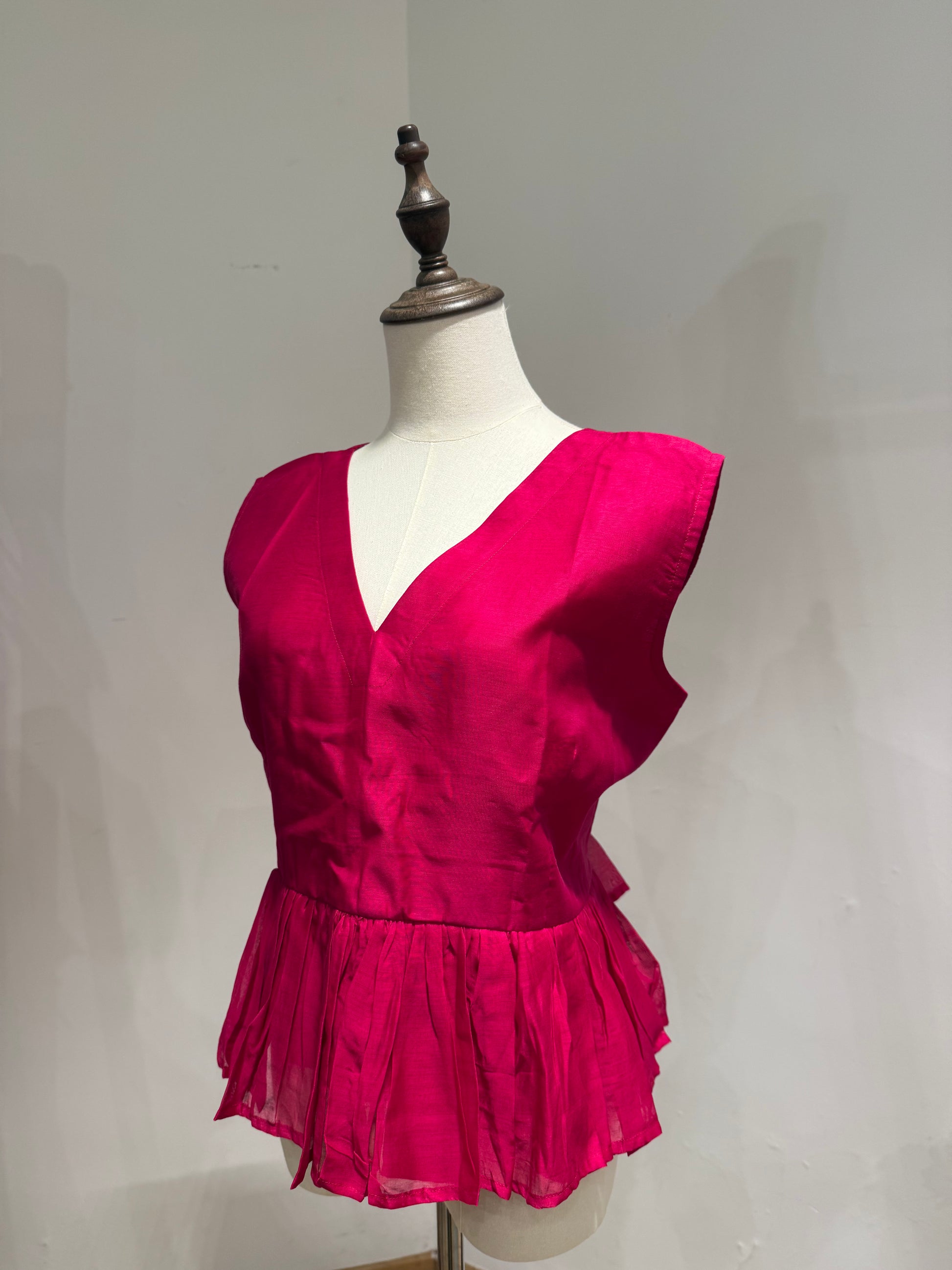 Design Style: Structured peplum silhouette with a flattering waistline, sleeveless V-neckline, soft pleated hem, and concealed back zipper. Designed for effortless elegance and versatile styling.