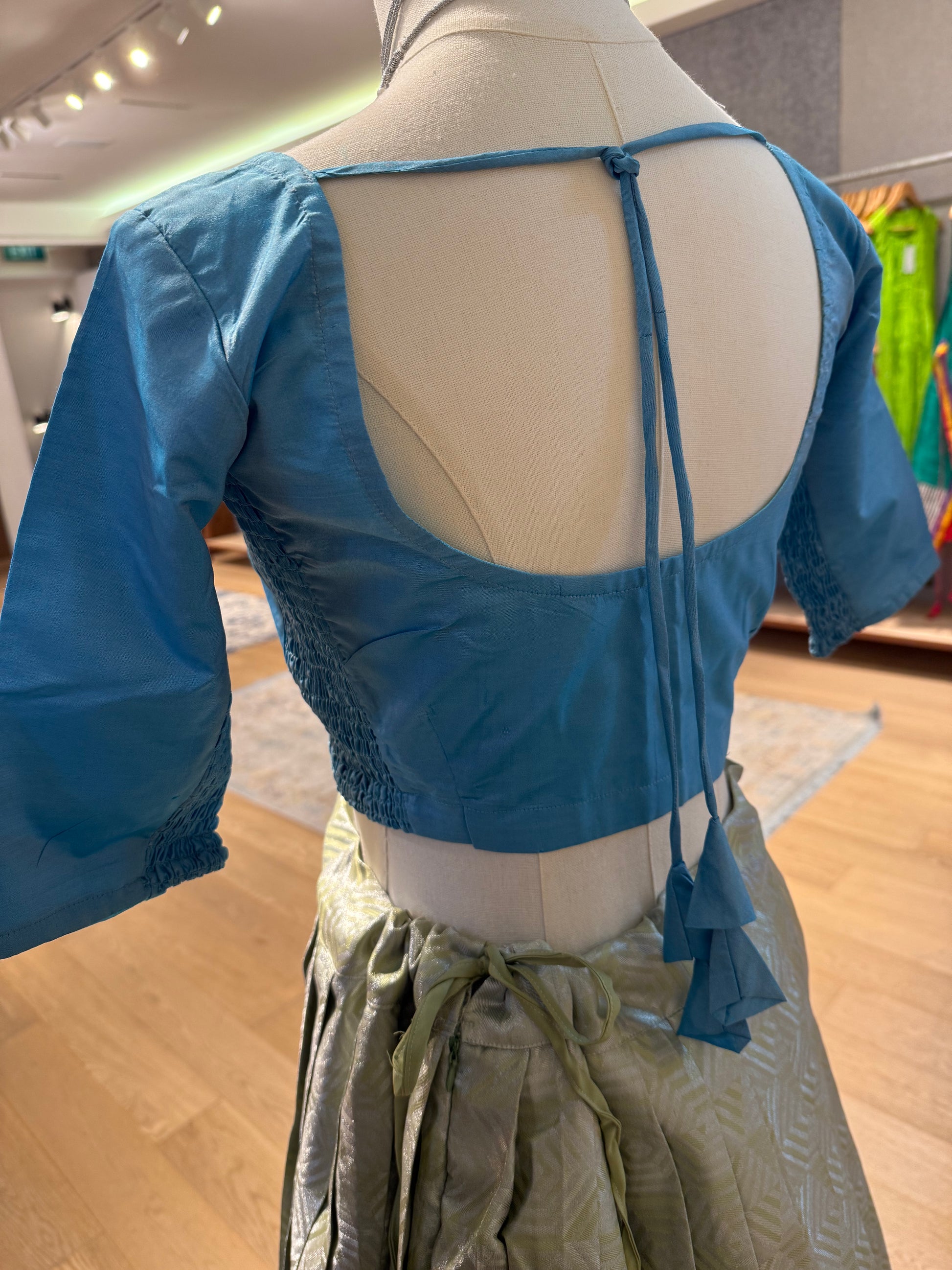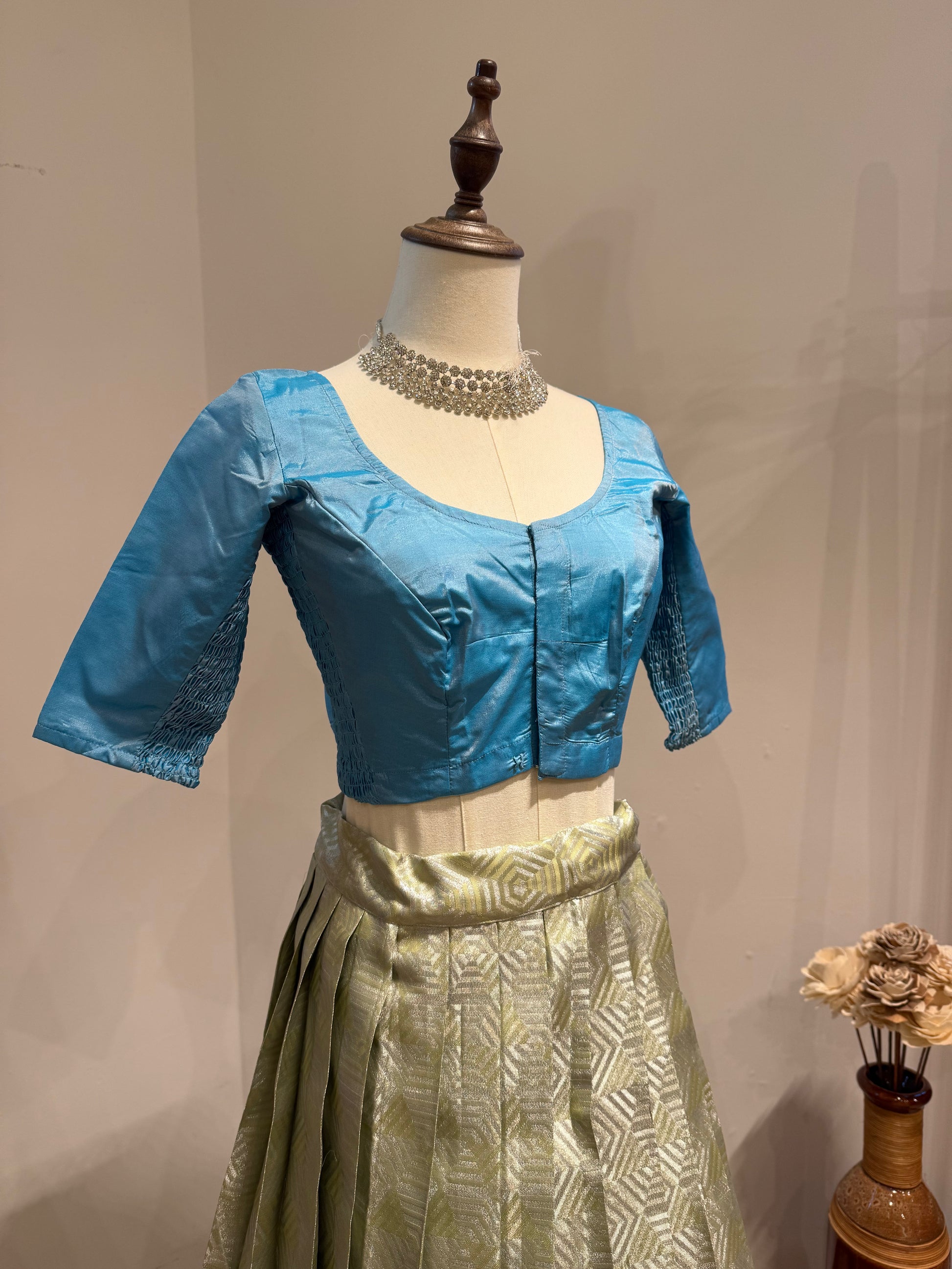 A modern essential for every saree lover, our Skyline Stretchable Blouse comes in a soft, light blue hue that flatters every skin tone. Made from our signature stretch fabric, it hugs your curves gently while allowing full freedom of movement, keeping you comfortable from morning poojas to evening receptions.